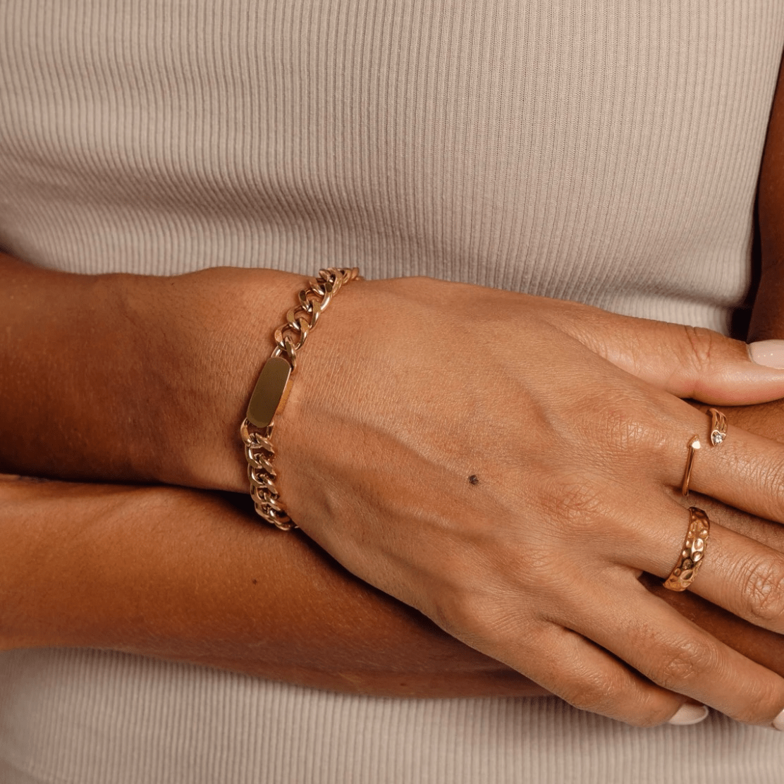 Narukvice su izrađene od hirurškog čelika vrhunskog kvaliteta- 316 STAINLESS STEEL sa 14k pozlatom, što znači da ne menjaju boju, ne rđaju, ne ostavljaju tragove na koži, ne izazivaju alergijske reakcije i sa njima se slobodno možete kupati i u hlorisanoj i u slanoj vodi (na moru) i možete trenirati. Za kvalitet našeg nakita garantujemo!