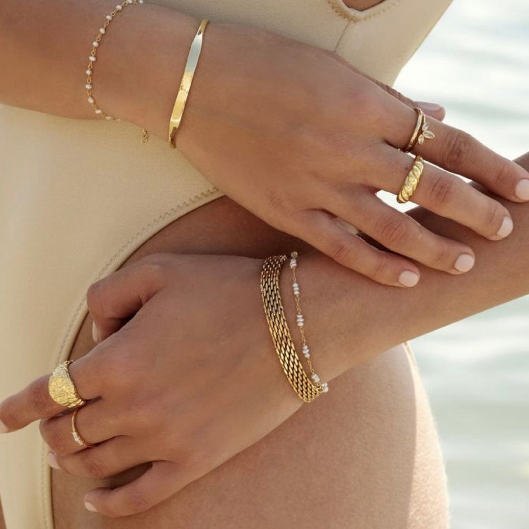 Svaki komad koji sam kod vas uzela je besprekoran-jak,izdržljiv, ne menja boju evo ni posle godinu dana, sa nakitom se kupam, letujem, treniram, bukvalno ne skidam, kakav je takav je. Za ovo letovanje sam se odlučila za ove glomazne narukvice i top su, zadovoljile su sva moja očekivanja, nosim ih i na plaži, i u moru,a i u izlasku. Multipraktik! 😆 Predivne su. 🫶🏻