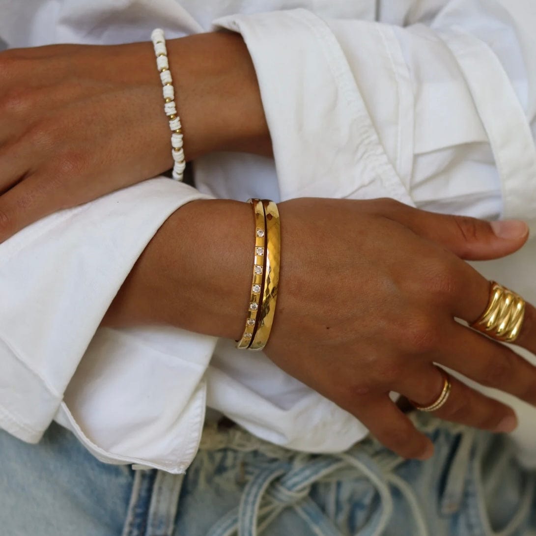 Narukvice su izrađene od hirurškog čelika vrhunskog kvaliteta- 316 STAINLESS STEEL sa 14k pozlatom, što znači da ne menjaju boju, ne rđaju, ne ostavljaju tragove na koži, ne izazivaju alergijske reakcije i sa njima se slobodno možete kupati i u hlorisanoj i u slanoj vodi (na moru) i možete trenirati. Za kvalitet našeg nakita garantujemo!