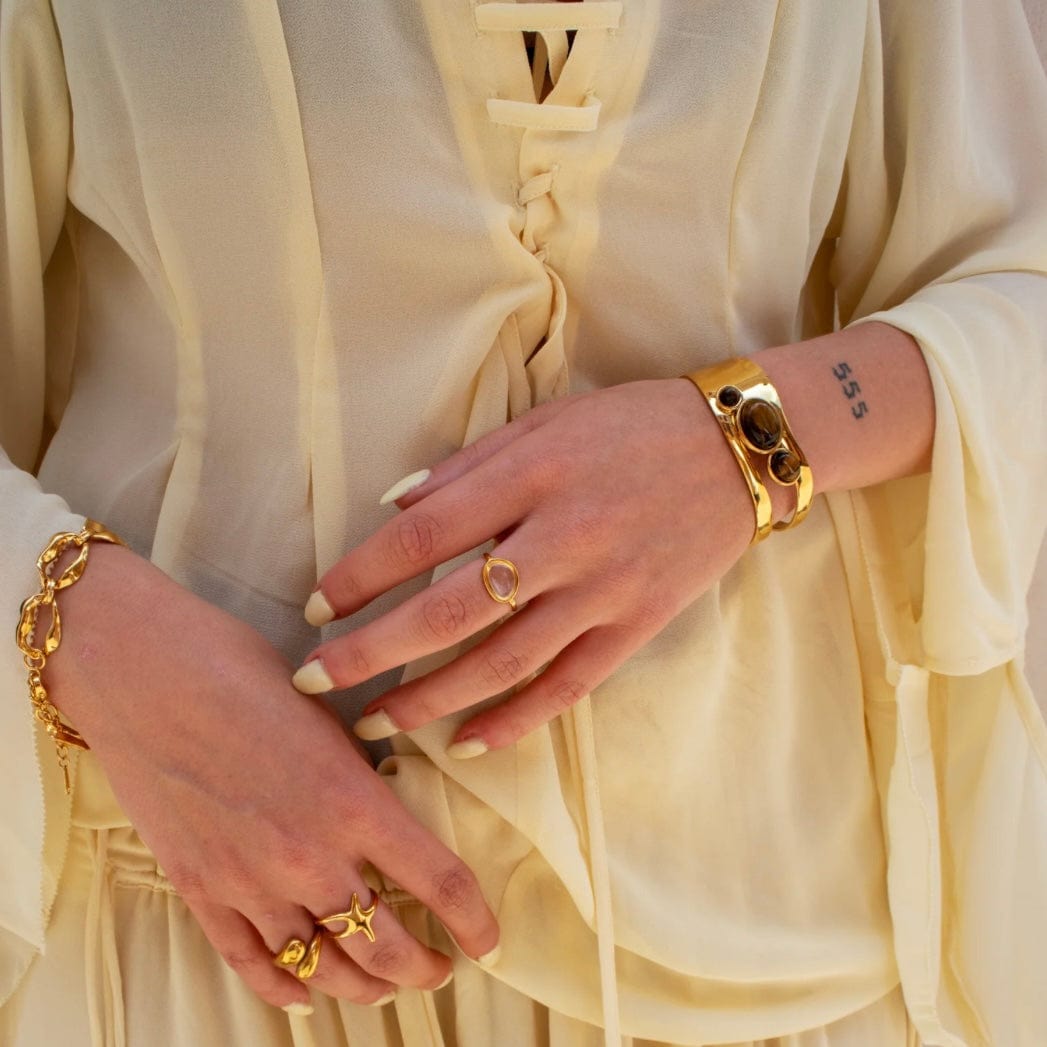 Narukvice su izrađene od hirurškog čelika vrhunskog kvaliteta- 316 STAINLESS STEEL sa 14k pozlatom, što znači da ne menjaju boju, ne rđaju, ne ostavljaju tragove na koži, ne izazivaju alergijske reakcije i sa njima se slobodno možete kupati i u hlorisanoj i u slanoj vodi (na moru) i možete trenirati. Za kvalitet našeg nakita garantujemo!