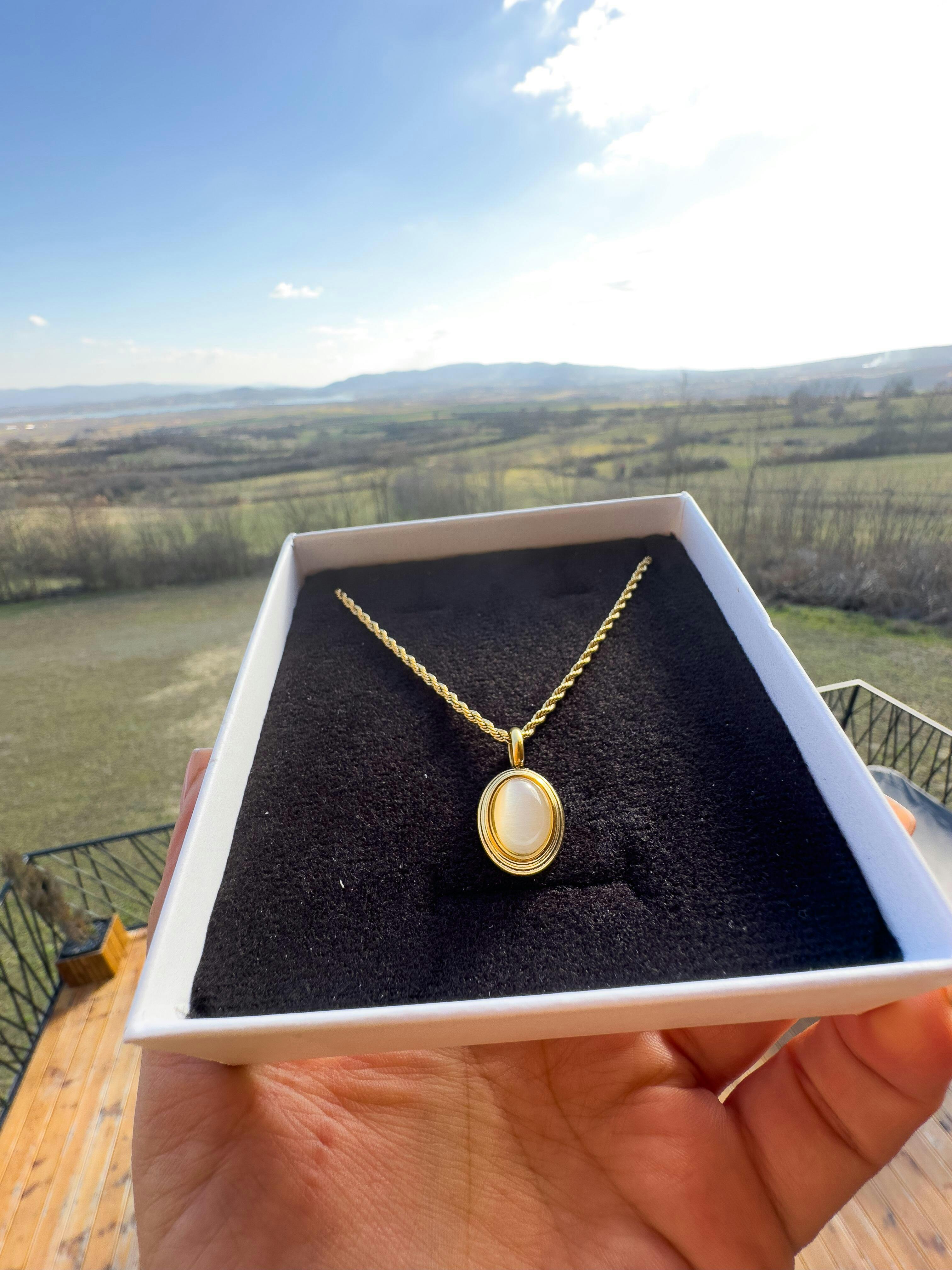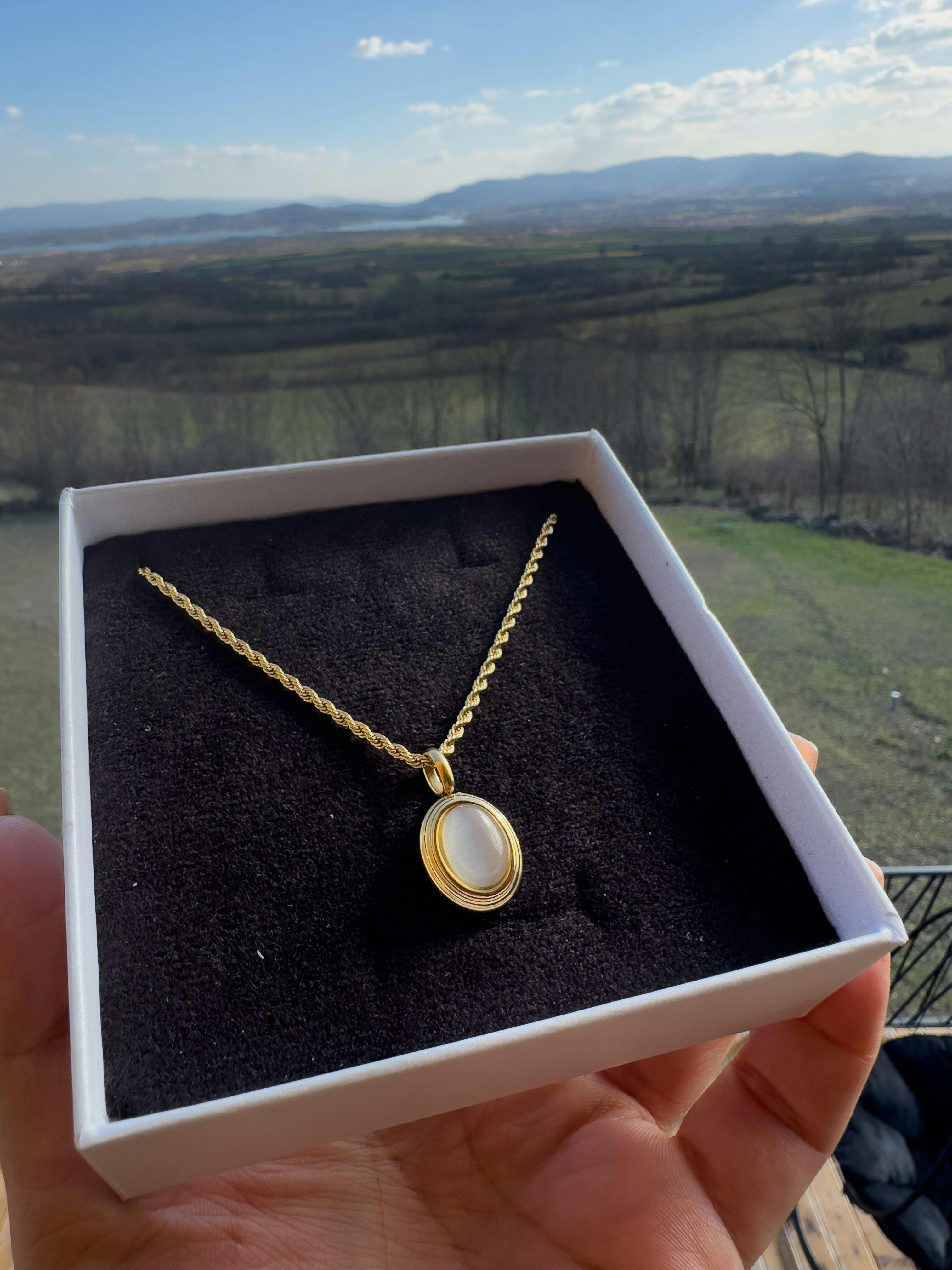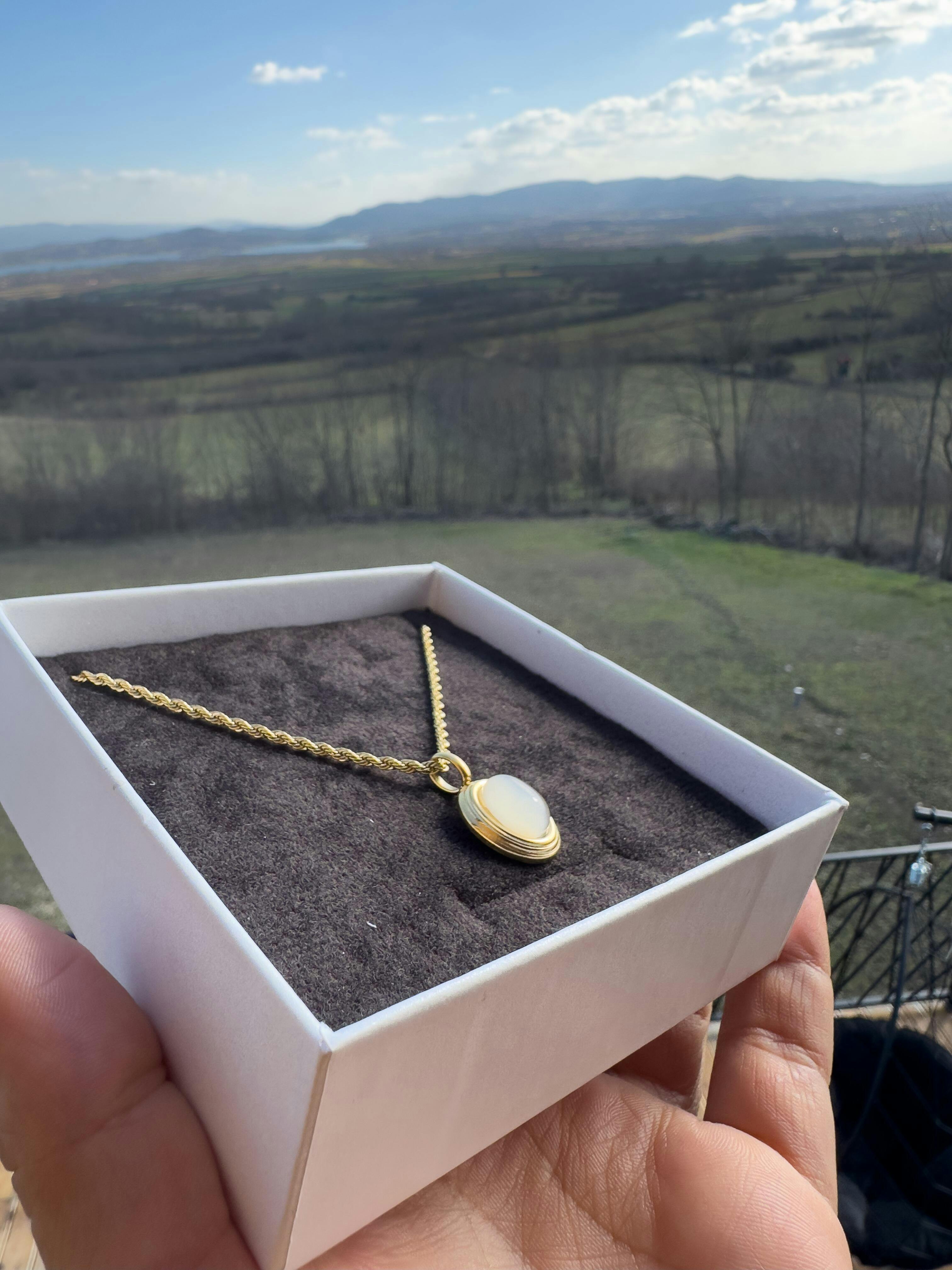Jutros mi je suprug poklonio ovu ogrlicu na ovom čarobnom mestu, uz predivan izlazak sunca. 🔆🥰 Ne mogu da vam opišem magiju trenutka i moje oduševljenje -prvo ljubavlju koju mi on svakoga dana pokazuje i dokazuje, a onda i ovim predivnim komadom nakita iz vašeg asortimana. 😇 Nežna ogrlica, komplikovanog rada, izuzetno efektnog, kristal mlečnobeo koji menja boju zavisno od svetlosti koja pada na njegovu površinu…Mnogo mi se dopada i sigurno ću je često nositi. 🥰