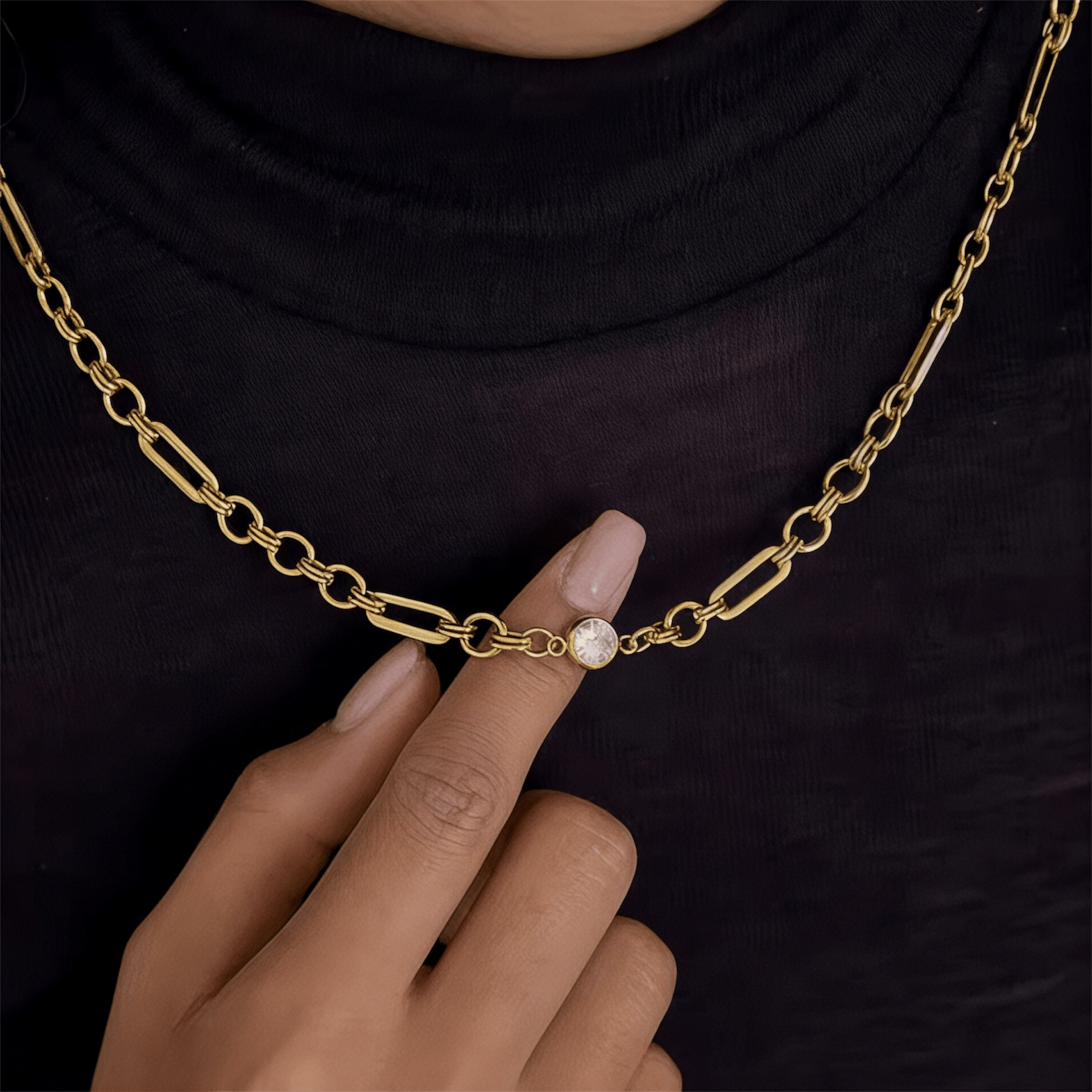 Ogrlice su izrađene od hirurškog čelika vrhunskog kvaliteta- 316 STAINLESS STEEL sa 14k pozlatom, što znači da ne menjaju boju, ne rđaju, ne ostavljaju tragove na koži, ne izazivaju alergijske reakcije i sa njima se slobodno možete kupati i u hlorisanoj i u slanoj vodi (na moru) i možete trenirati. Za kvalitet našeg nakita garantujemo!